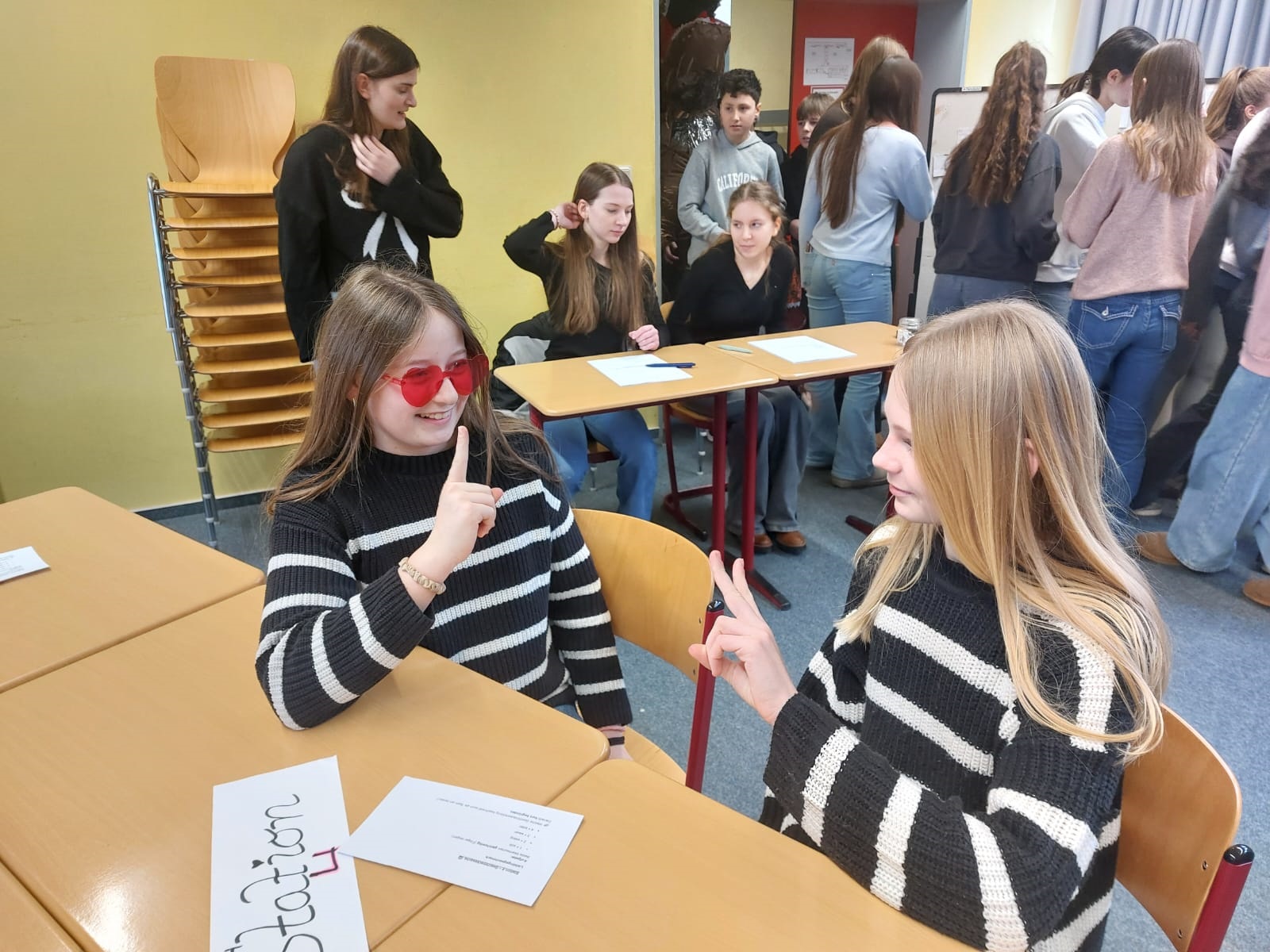 Ob beim „Augenblick der Wahrheit“, beim „Blinden Vertrauen“, beim Rückenzeichnen oder beim Komplimente-Express – überall standen Zusammenhalt, Wertschätzung und gemeinsames Erleben im Mittelpunkt. Besonders schön war zu sehen, wie viele Teams sich auf die Aufgaben eingelassen haben: Es wurde gelacht, konzentriert gearbeitet, kreativ gedacht und vor allem – einander aufmerksam begegnet. Die Aktion war durchgehend gut besucht und sorgte für eine spürbar positive Atmosphäre im Schulhaus.