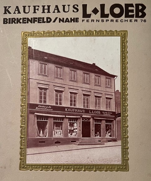 Leopold Loeb wurde am 7. Februar 1848 in Steinbach am Glan (Kusel) geboren. Gemeinsam mit seiner Ehefrau Pauline (geb. Kahn, * 29. Juni 1858 in Rodalben) betrieb er in der Straße „Am Kirchplatz 3“, nahe der evangelischen Kirche, ein Kaufhaus in Birkenfeld. Aus der Ehe gingen mehrere Kinder hervor: So die Töchter Frieda (* 5. September 1883, † 19. September 1942, Treblinka) und Lydia (verh. Senator, * 28. September 1898, † Juni 1944 Chelmno/Kulmhof), die Söhne Jakob (* 5. März 1888, † 4. Juni 1957) und Moritz (* 10. Oktober 1891, † 3. September 1943, Auschwitz) sowie Simon (* 26. November 1893, † 2. Juni 1983, Neustadt/Weinstraße). Während Jakob und Simon später die Leitung des väterlichen Geschäftes in der heutigen Achtstraße 9 übernahmen, absolvierte Moritz ab 1906 in Witten eine Schneiderlehre und arbeitete später in Köln als Maßschneider. Leopold Loeb verstarb am 27. Januar 1923 in Birkenfeld. Seine Witwe Pauline floh am 27. Juli 1937 nach Arnheim in Holland. Von dort wurde sie später ins Konzentrationslager Sobibor in Polen deportiert, wo sie am 16. April 1943 ermordet wurde.